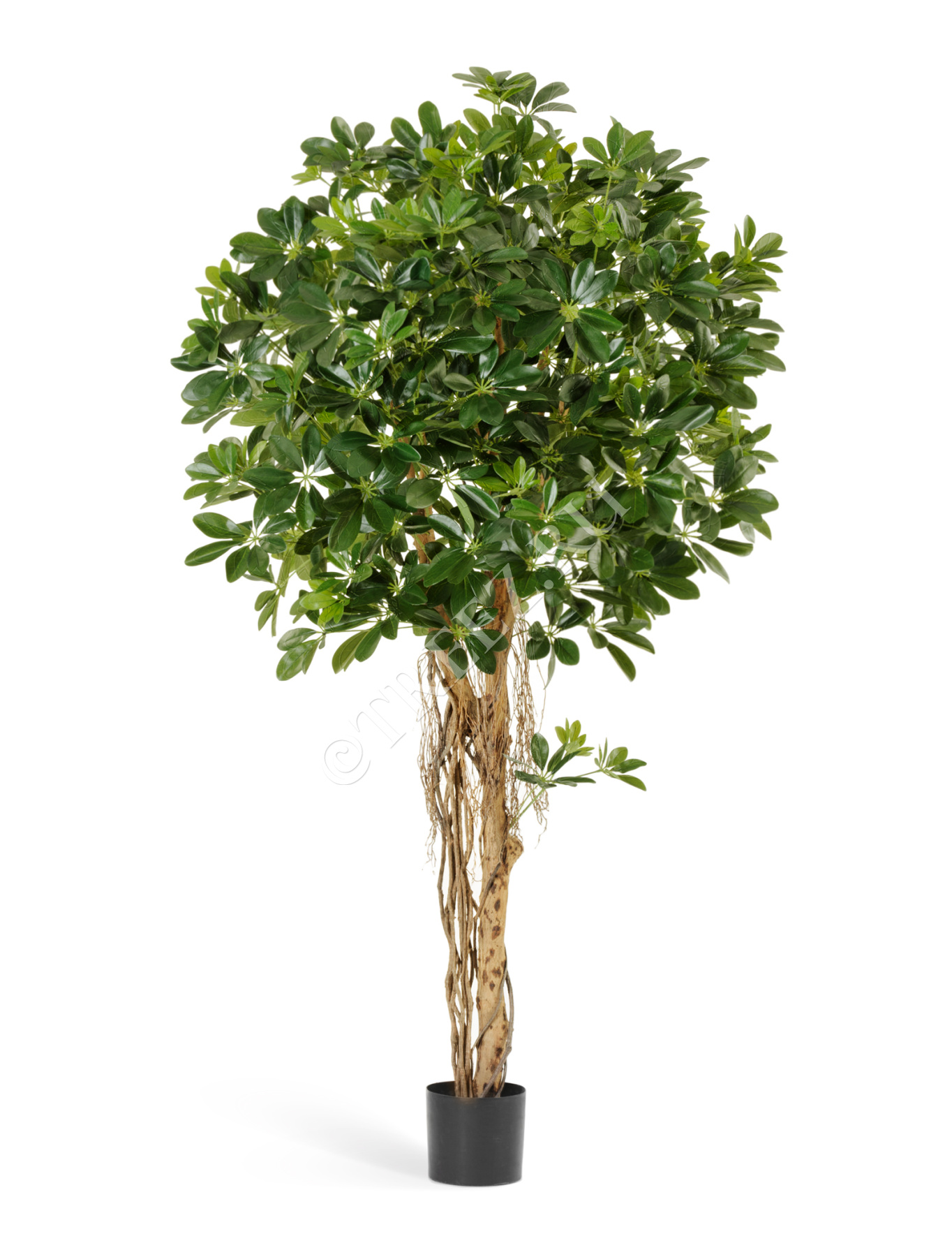 Шеффлера зонтичная - имеет интересные необычные крупные листья, похожие на большие раскрытые цветы или ладонь. Цвет листьев зелёный и светло-зелёный. Этот цвет придаст вашему интерьеру яркости. Форма дерева так же очень интересная - большой шар на штамбе. Это дерево поможет Вам сделать Ваш интерьер необычным. Качество растения позволит Вам поместить его в любом месте, даже в непосредственной близости от глаз.