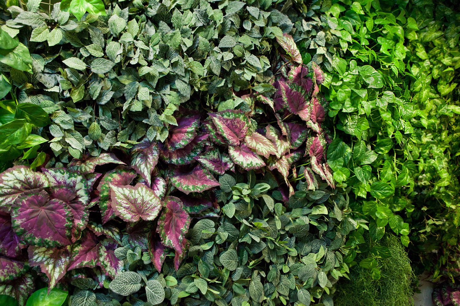 Куст БЕЗ цветков. Великолепно подходит для создания цветовых акцентов в фитостенах или клубмах, т.к. имеет крупные зелено-бордовые с натуральной серебринкой листья.