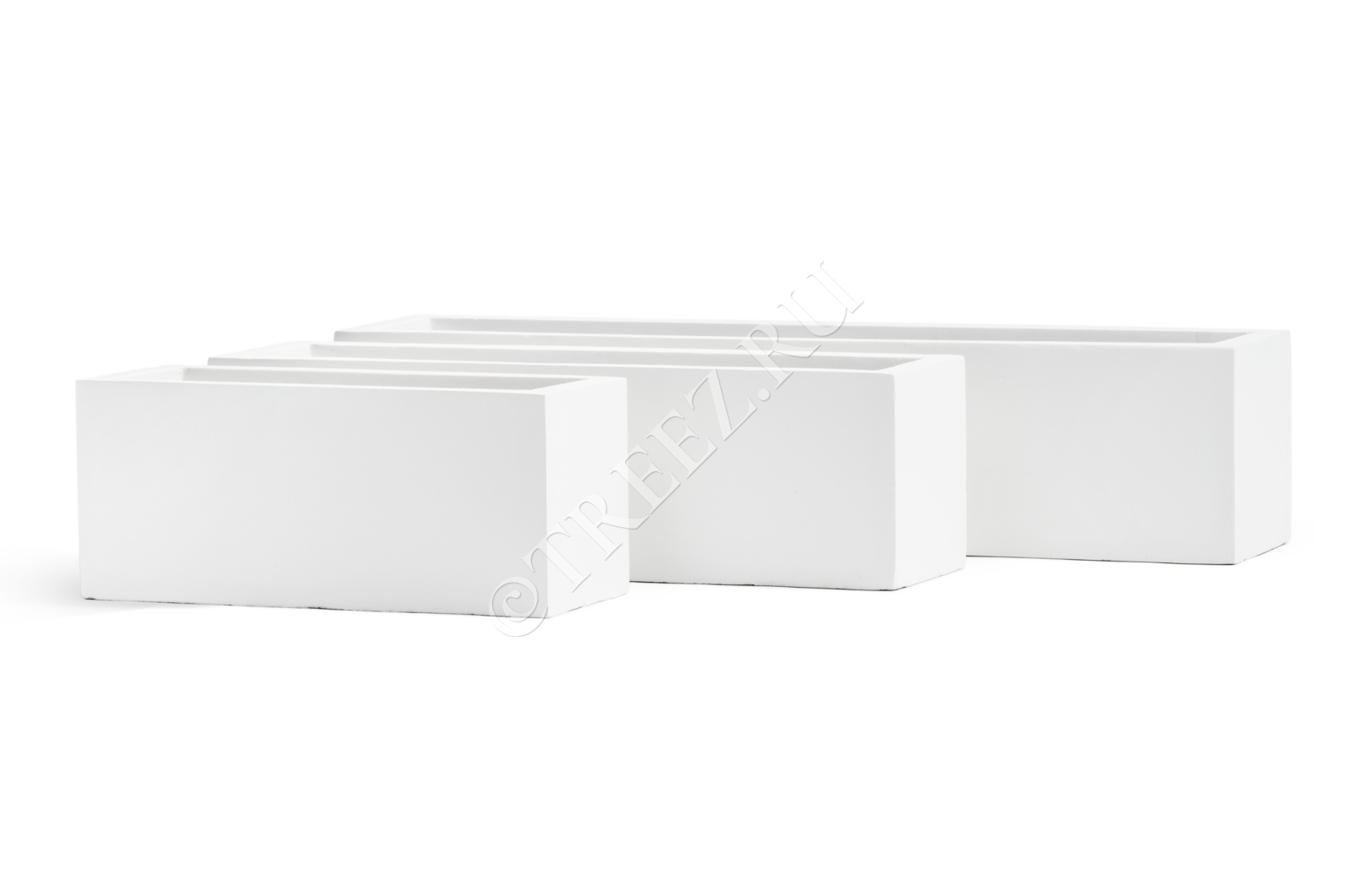 Кашпо TREEZ ERGO - Just - Узкий низкий прямоугольник - Белый камень