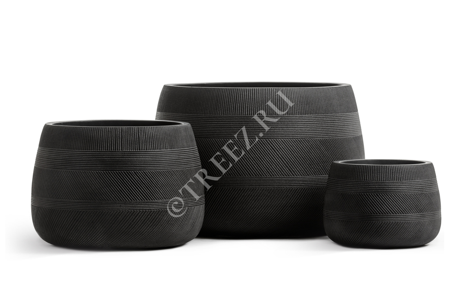 Кашпо TREEZ ERGO - Graphics - Низкая чаша - Чёрный графит