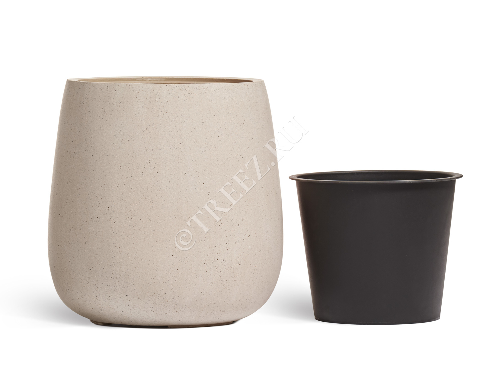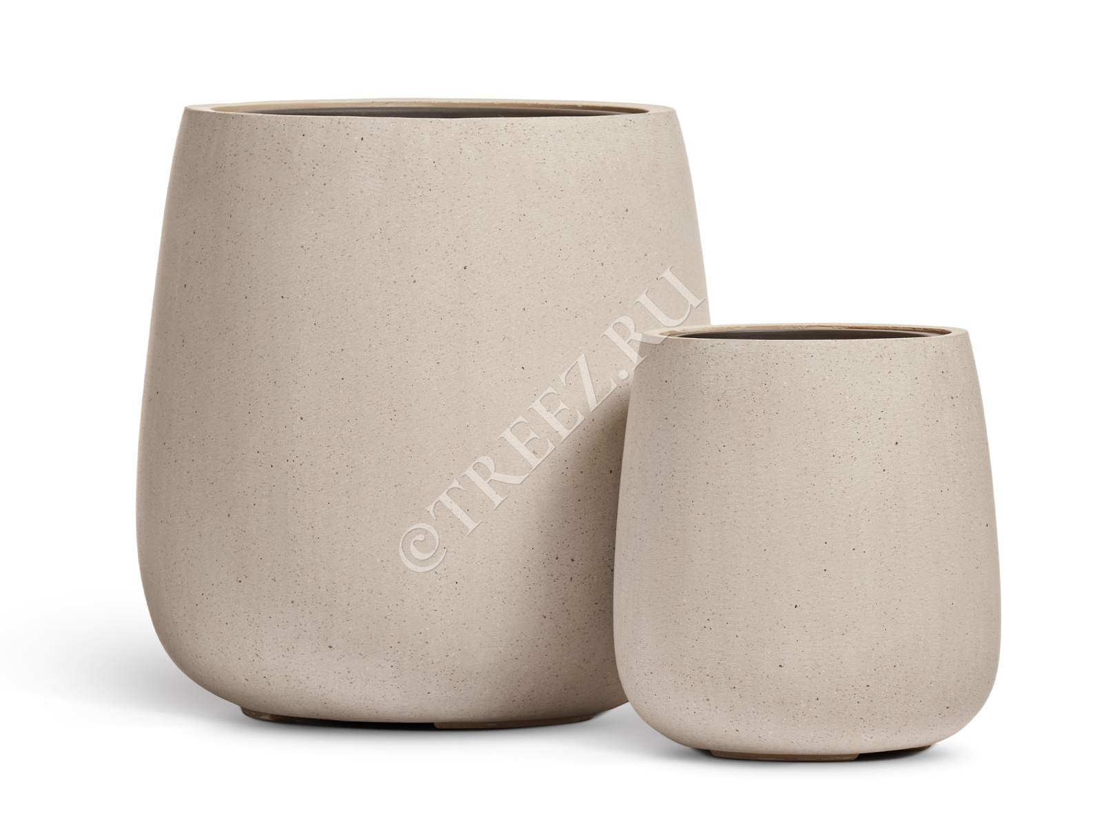 Кашпо TREEZ Effectory - Beton - Большой округлый конус - Белый песок