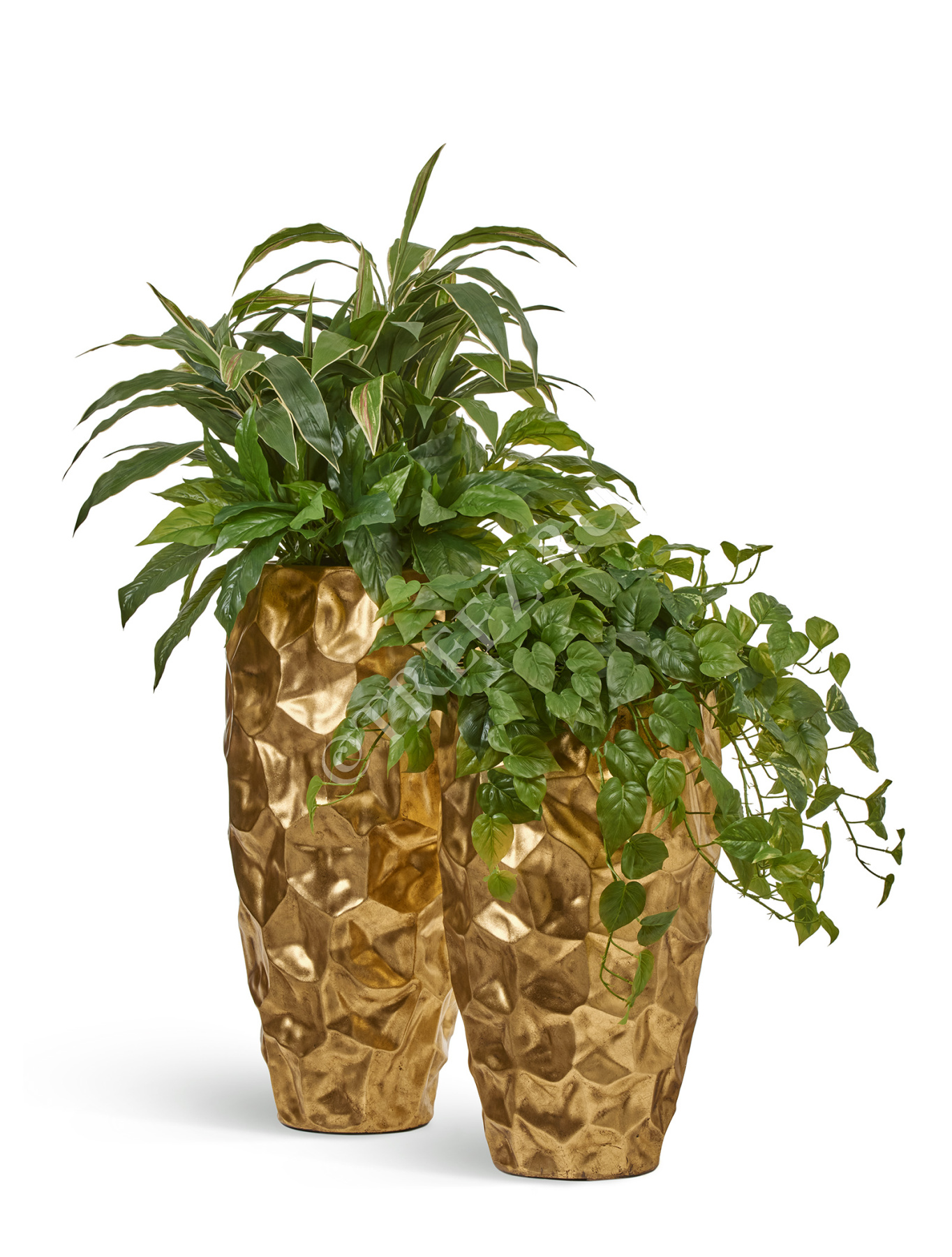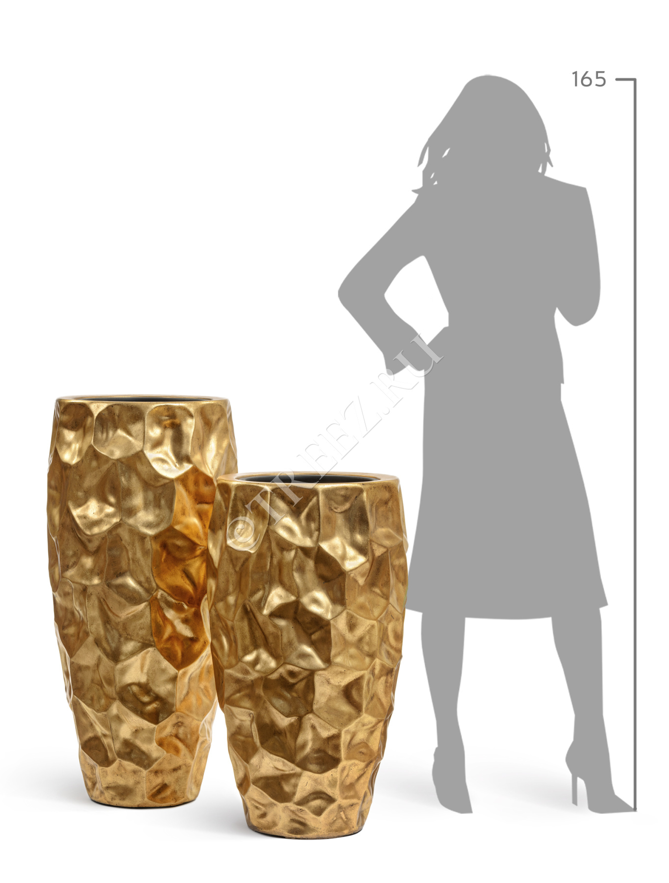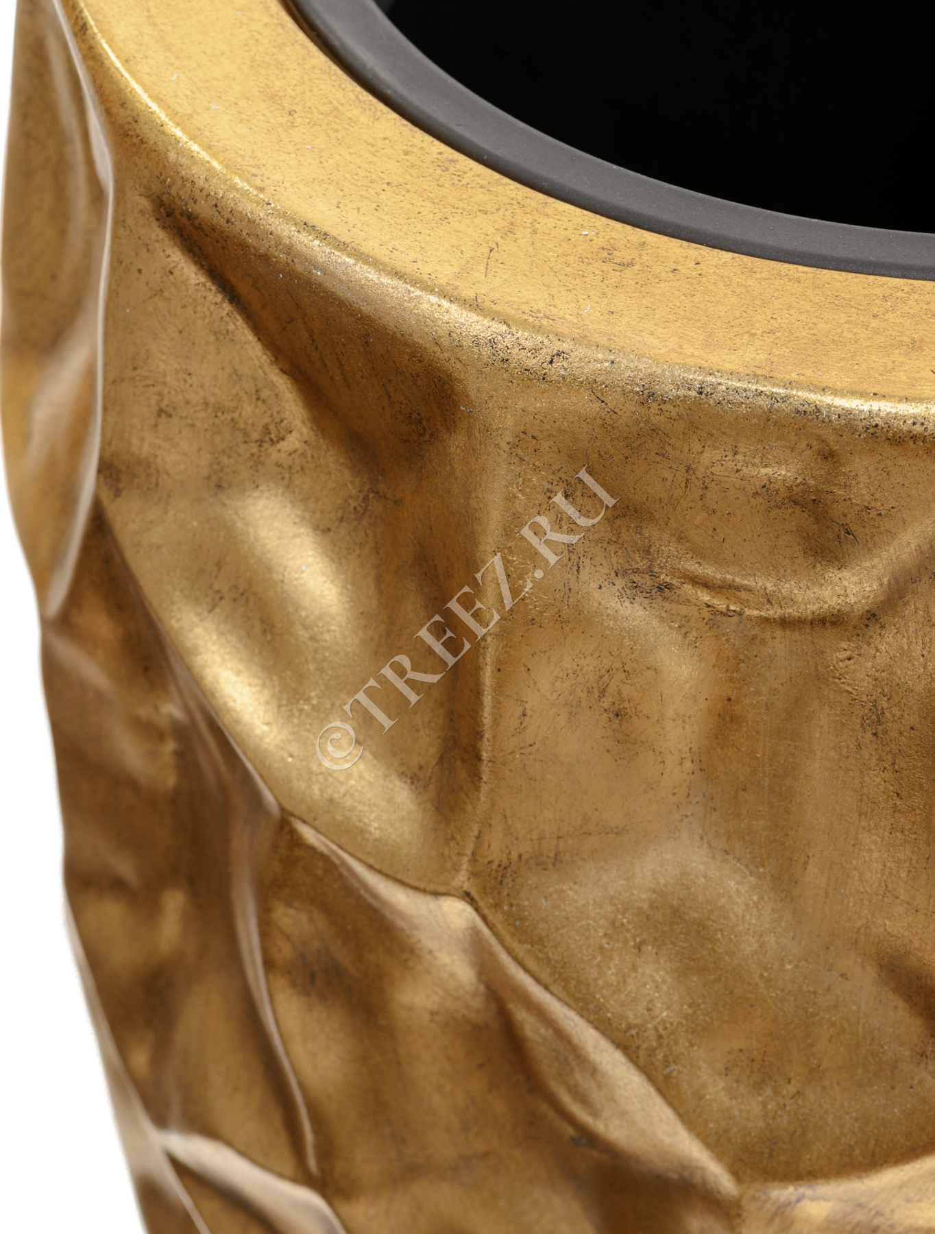 Кашпо TREEZ Effectory - Metal - Высокий округлый конус Design Crumple - Сусальное золото