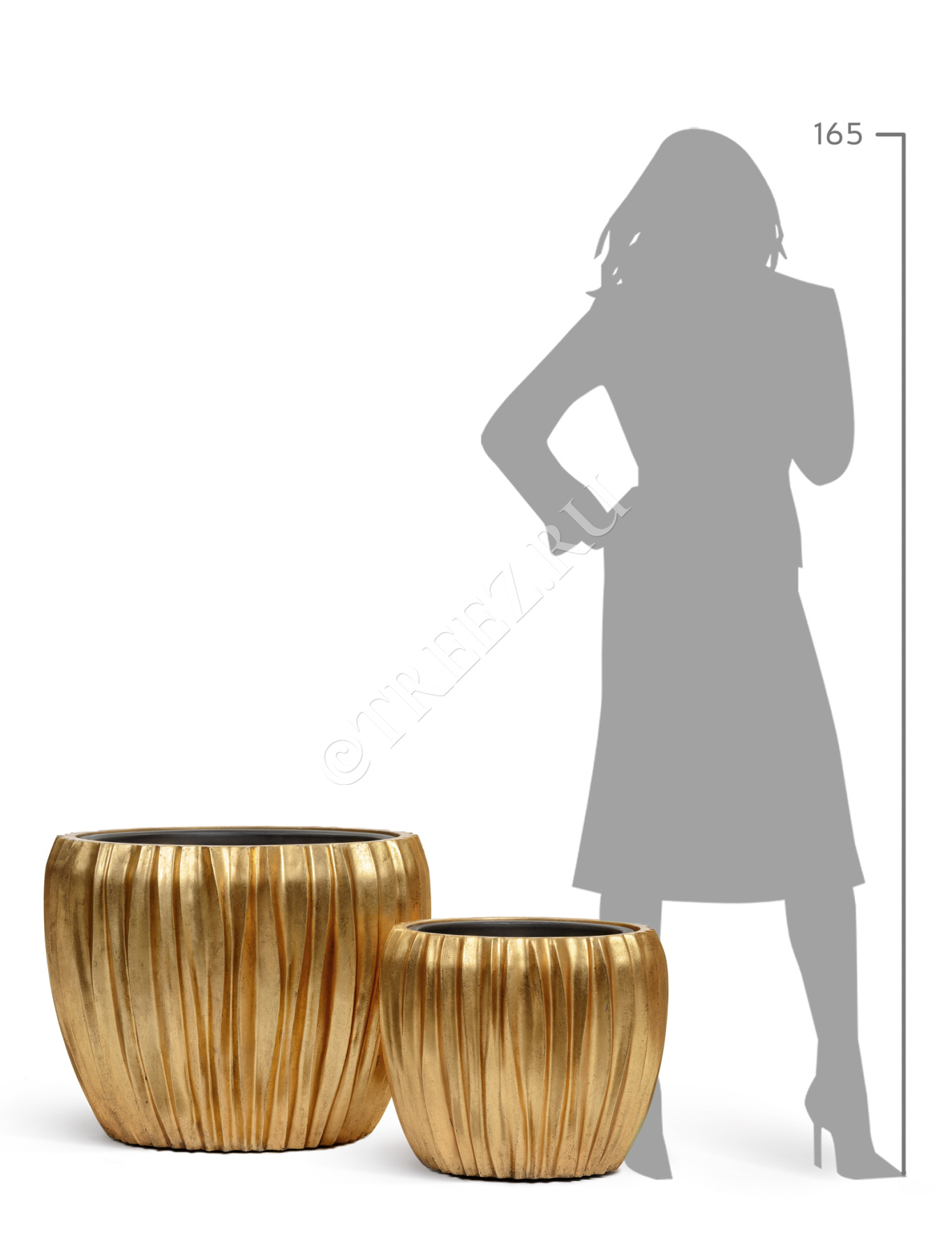 Кашпо TREEZ Effectory - Metal - Высокая лодка Design Crumple - Сусальное золото