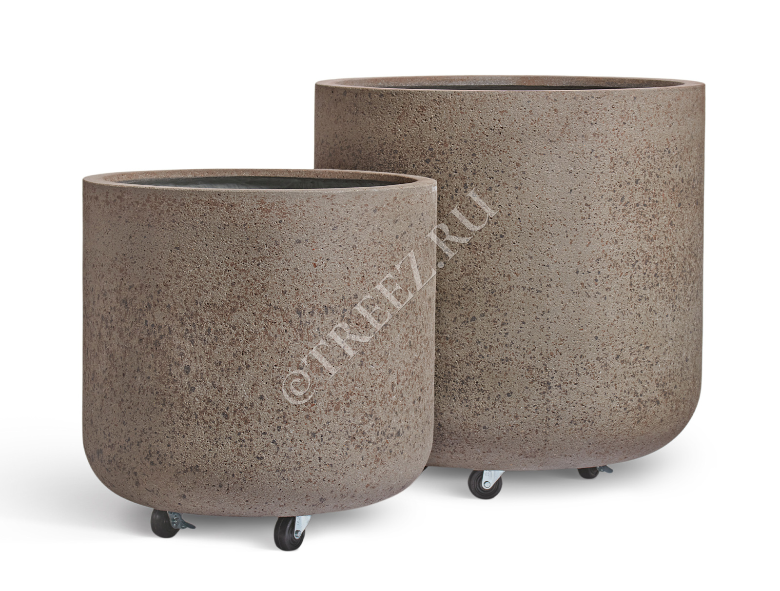 Кашпо TREEZ ERGO - Hard Rock - Цилиндрическая чаша на колёсиках - Песок серый беж