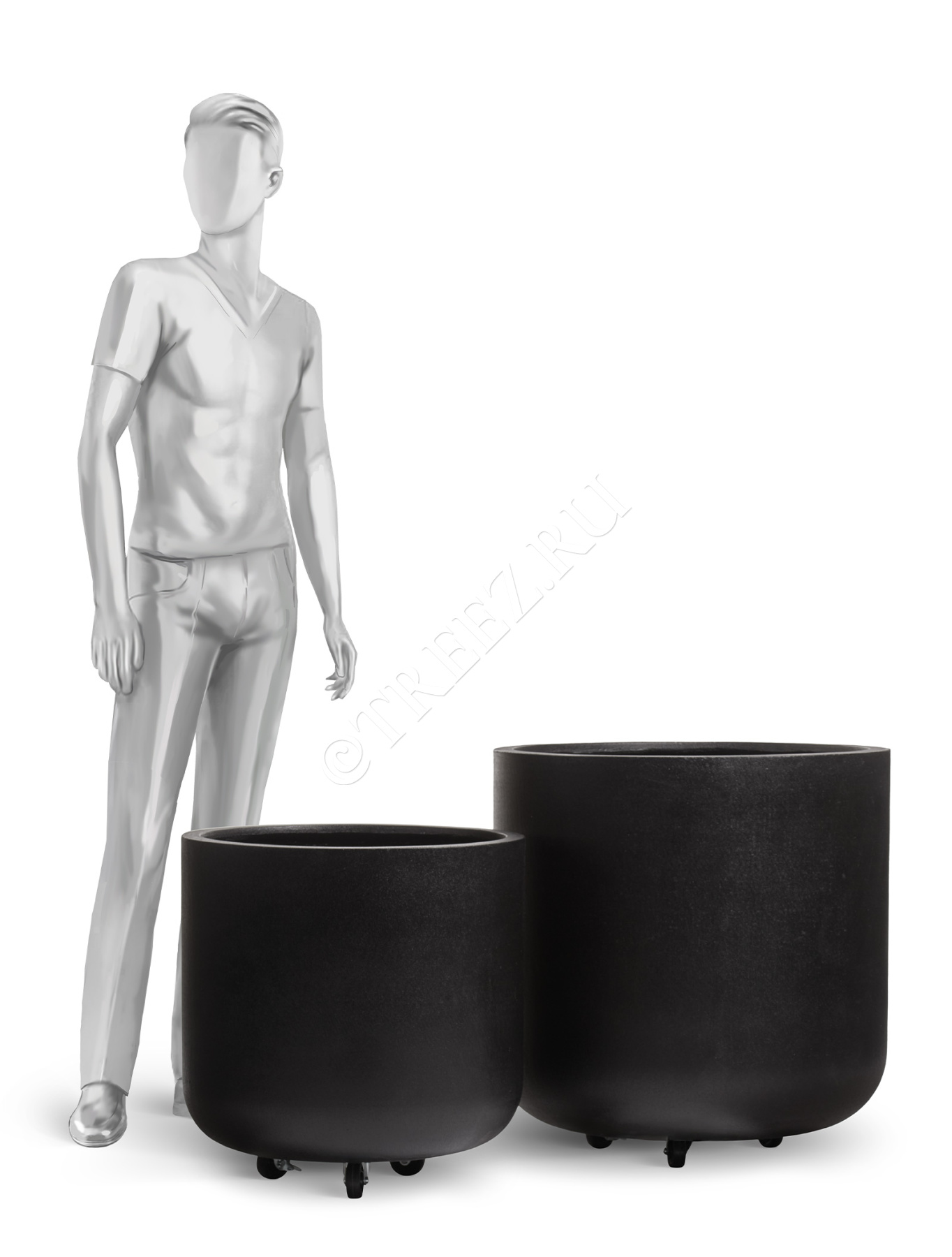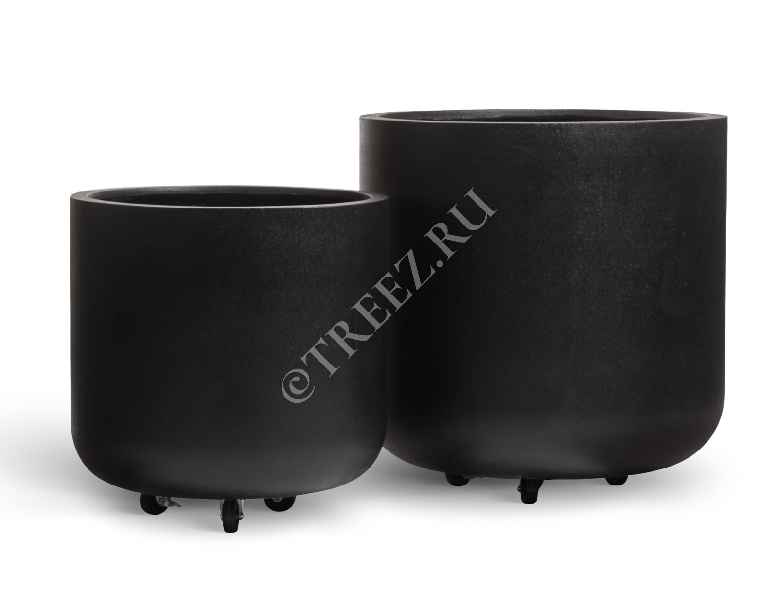 Кашпо TREEZ ERGO - Hard Rock - Цилиндрическая чаша на колёсиках - Чёрный песок