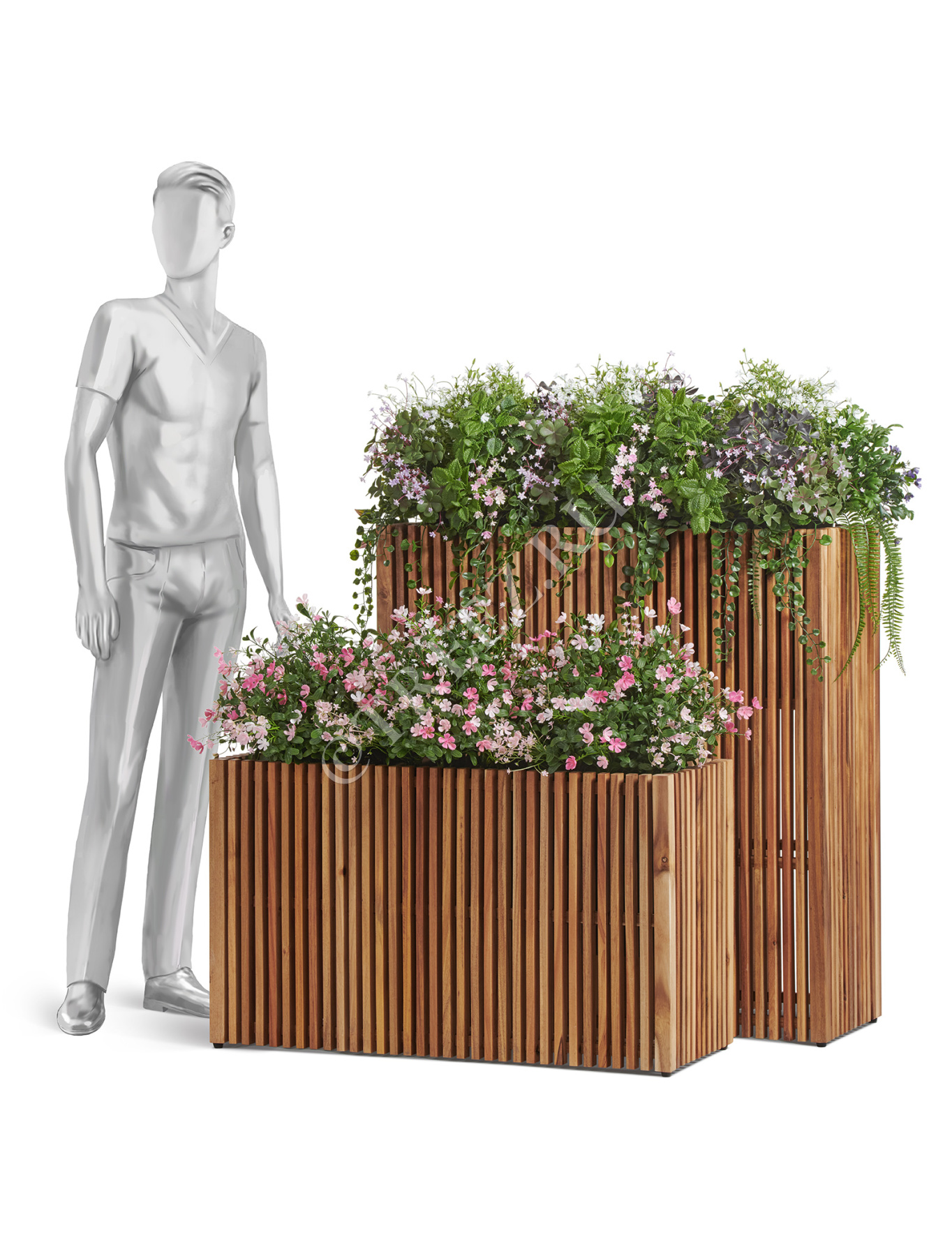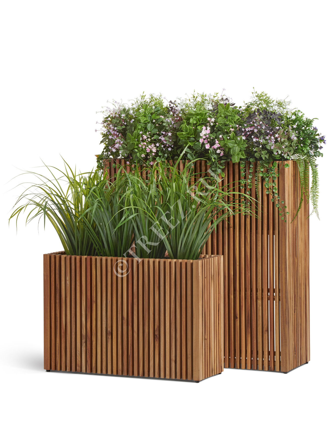 Кашпо Treez Effectory серии Timberline созданы из натуральной древесины тропической акации. Она отличается особой прочностью и не подвержена гниению.