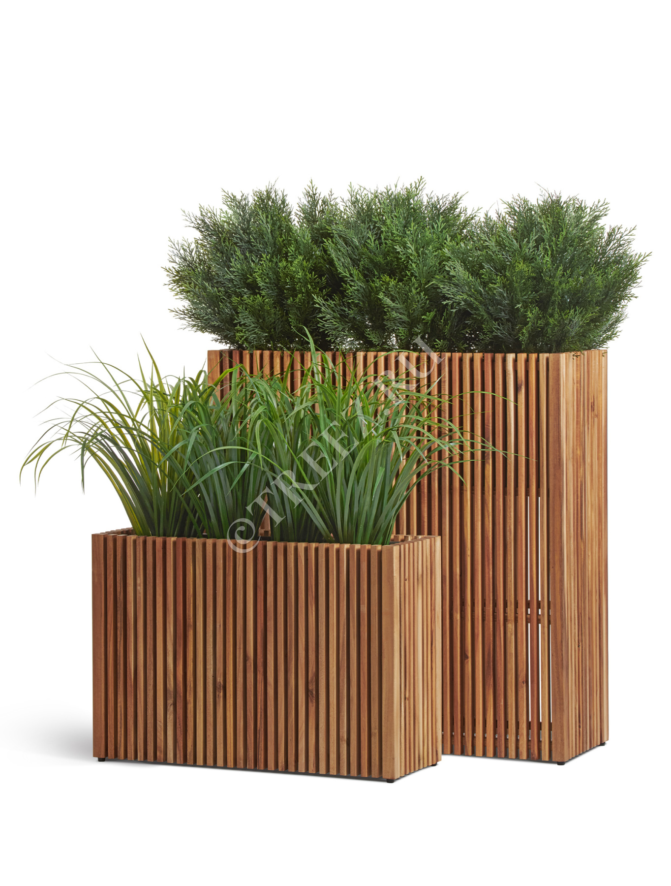 Кашпо Treez Effectory серии Timberline созданы из натуральной древесины тропической акации. Она отличается особой прочностью и не подвержена гниению.