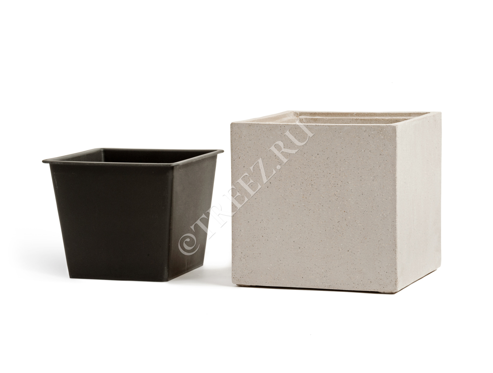 Кашпо TREEZ Effectory - Beton - Куб - Белый песок