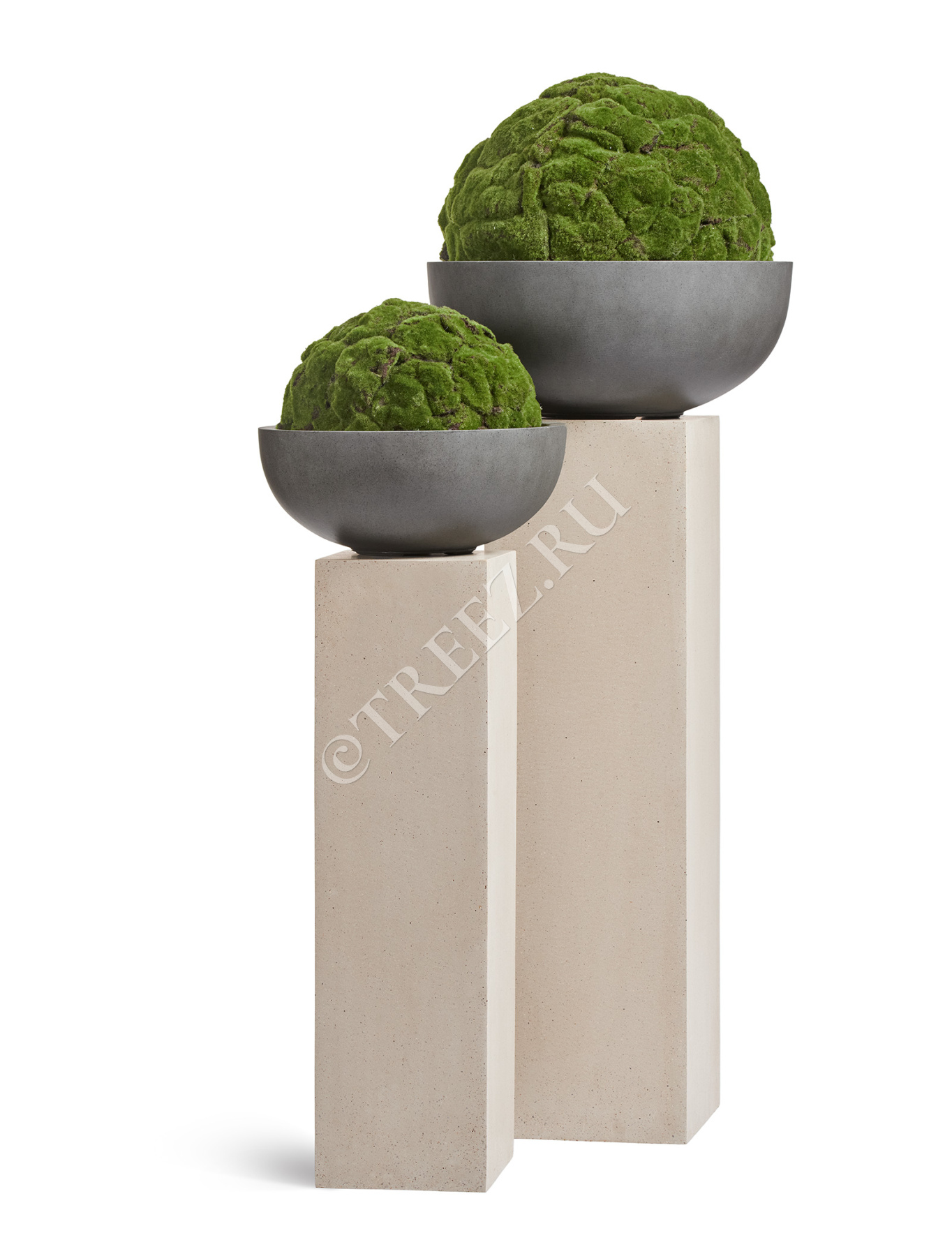 Кашпо TREEZ Effectory - Beton - Низкая сферическая чаша - Тёмно-серый бетон