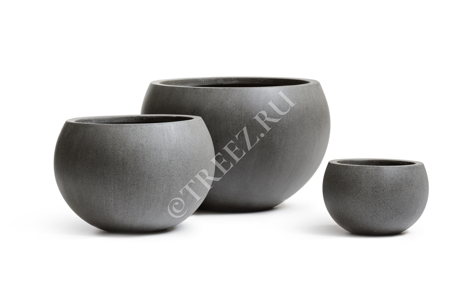 Кашпо TREEZ Effectory - Beton - Низкая сферическая чаша - Тёмно-серый бетон