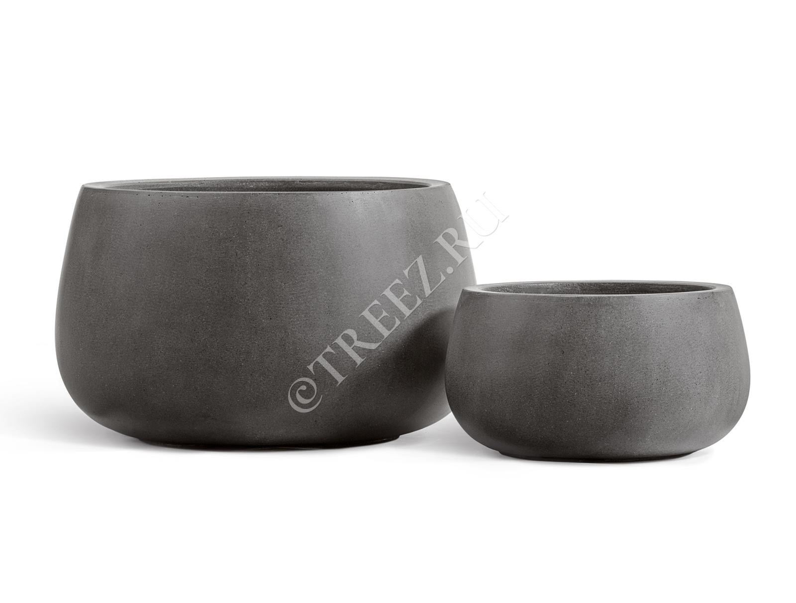 Кашпо TREEZ Effectory - Beton - Низкая Design-чаша - Тёмно-серый бетон