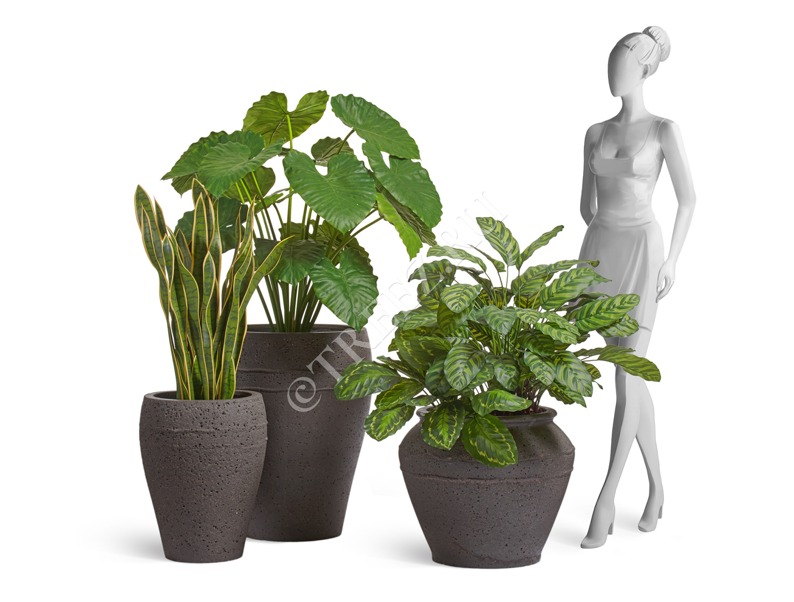 Сет № 23 - Алоказия, Филодендрон и Замиокулькас в кашпо Treez Effectory Gloss Высокий куб