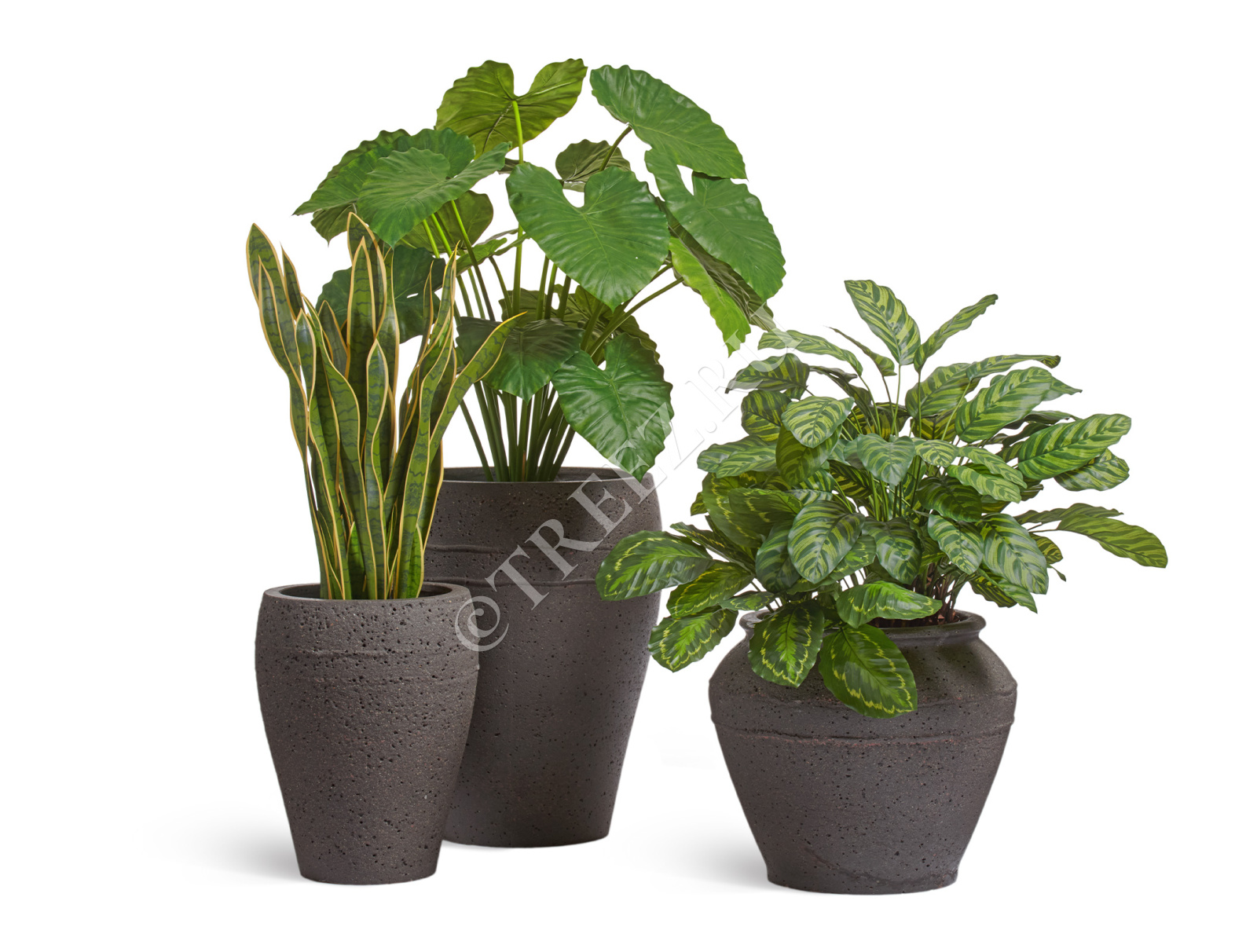 Сет № 63 - Композиция с Алоказией и Калатеей в кашпо Treez Ergo Nero